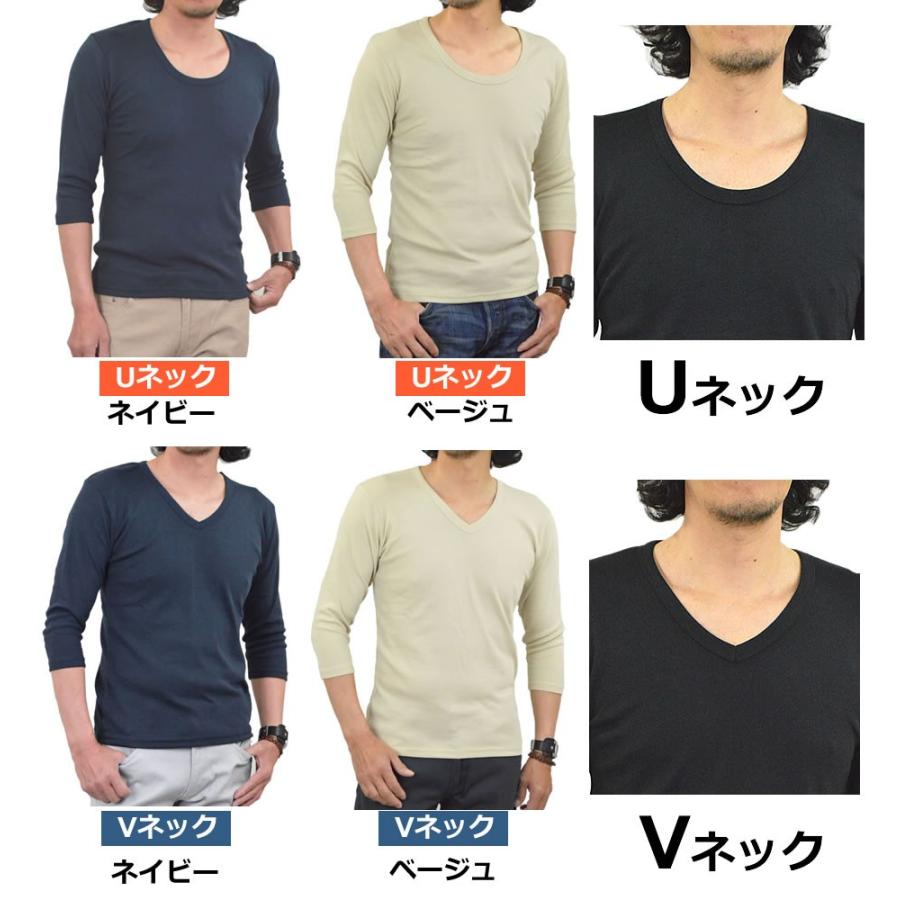 Tシャツ 7分袖 メンズ 無地 七分袖 カットソー インナー Uネック Vネック 無地tシャツ 7分袖tシャツ 下着 重ね着 白 黒 2点までメール便可能 7t 70 アダマス ヤフー店 通販 Yahoo ショッピング
