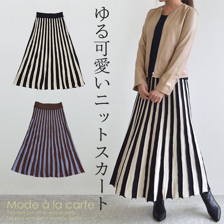 スカート ロング 秋 秋冬 40代 ミモレ丈 ストライプ ボーダー 柄 ニットスカート レディース ロングスカート フレアスカート ボトムス スト 50代 コーデ 大人 Ohb 1325 大人のきれい服 モードアラカルト 通販 Yahoo ショッピング